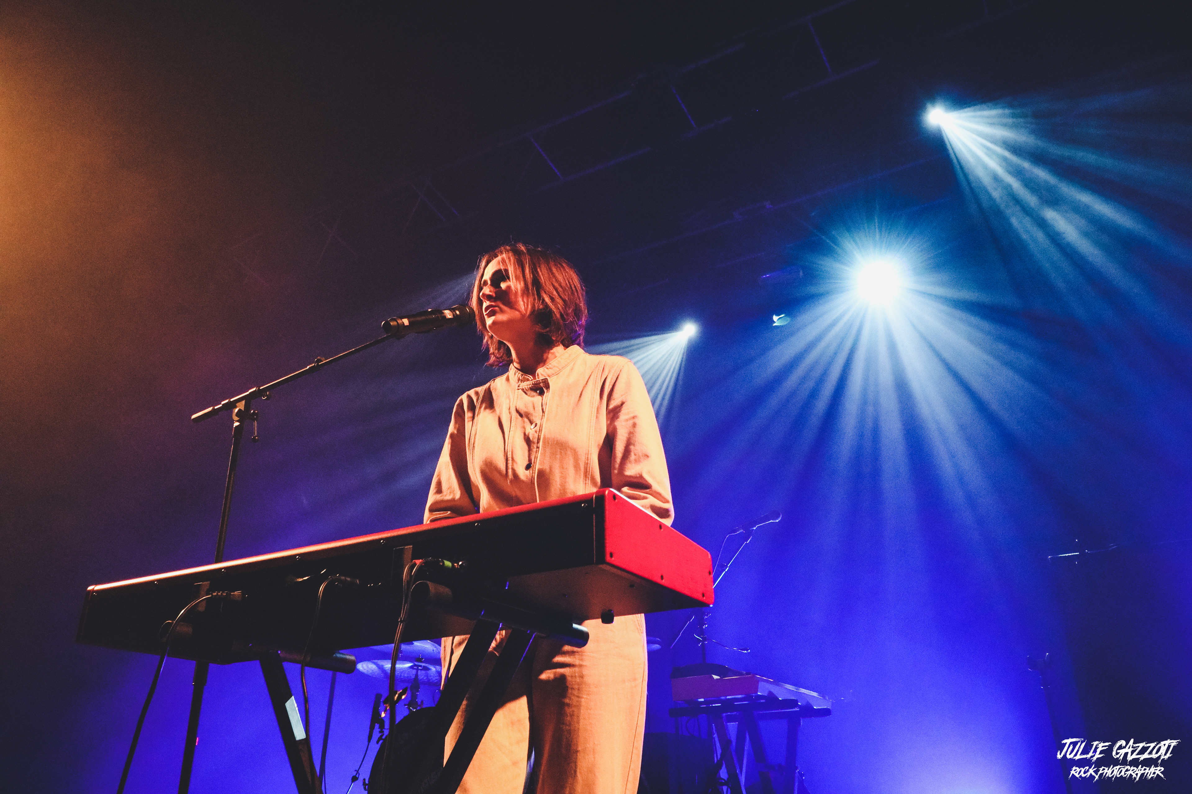 La troisième chanson "Abyssal" est une chanson sur le deuil, qu'elle chantera toujours accompagnée de sa contrebasse, avant d'enchaîner sur une nouvelle chanson avec son piano. L'artiste se raconte ensuite avec "Enfants du vertige", où elle explique qu'elle a appris à lâcher prise et qu'elle allait être un peu cru avec nous... Mais pas trop quand même. La salle est sous le charme. Une dernière chanson clôturera la prestation de cette artiste complète. Il va falloir la suivre dans les années à venir, à n'en pas douter.
